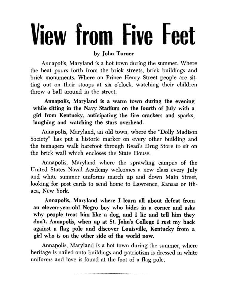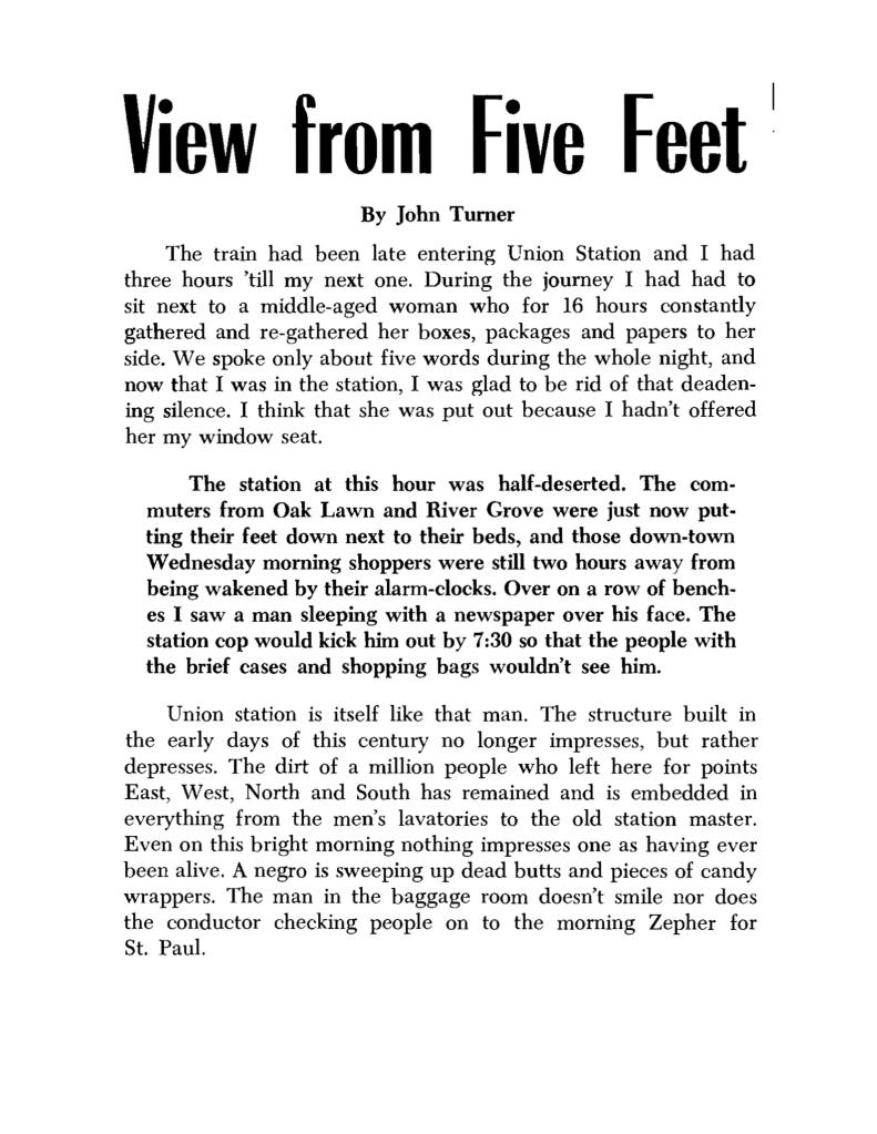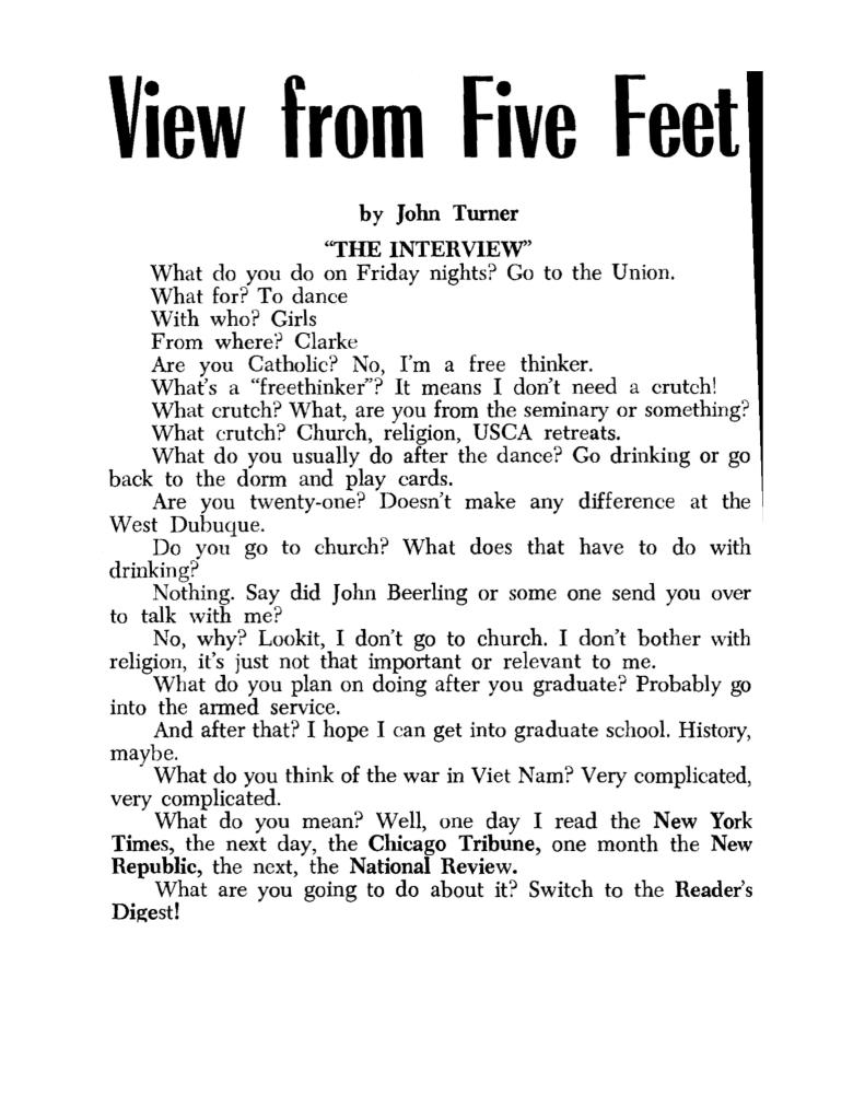 View From Five Feet was a column in The Que written during John’s years attending University of Dubuque in Iowa.